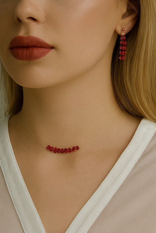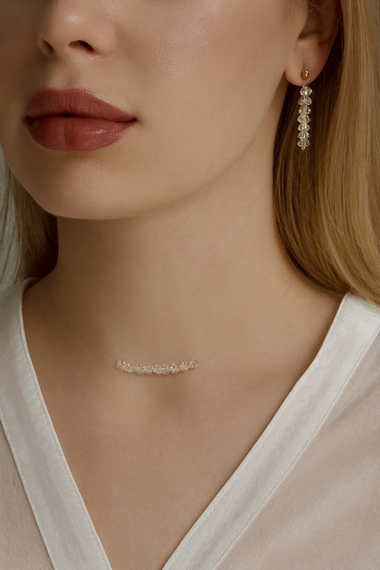 نیم ست کریستال رنگ ثابت با نخ نامرئی