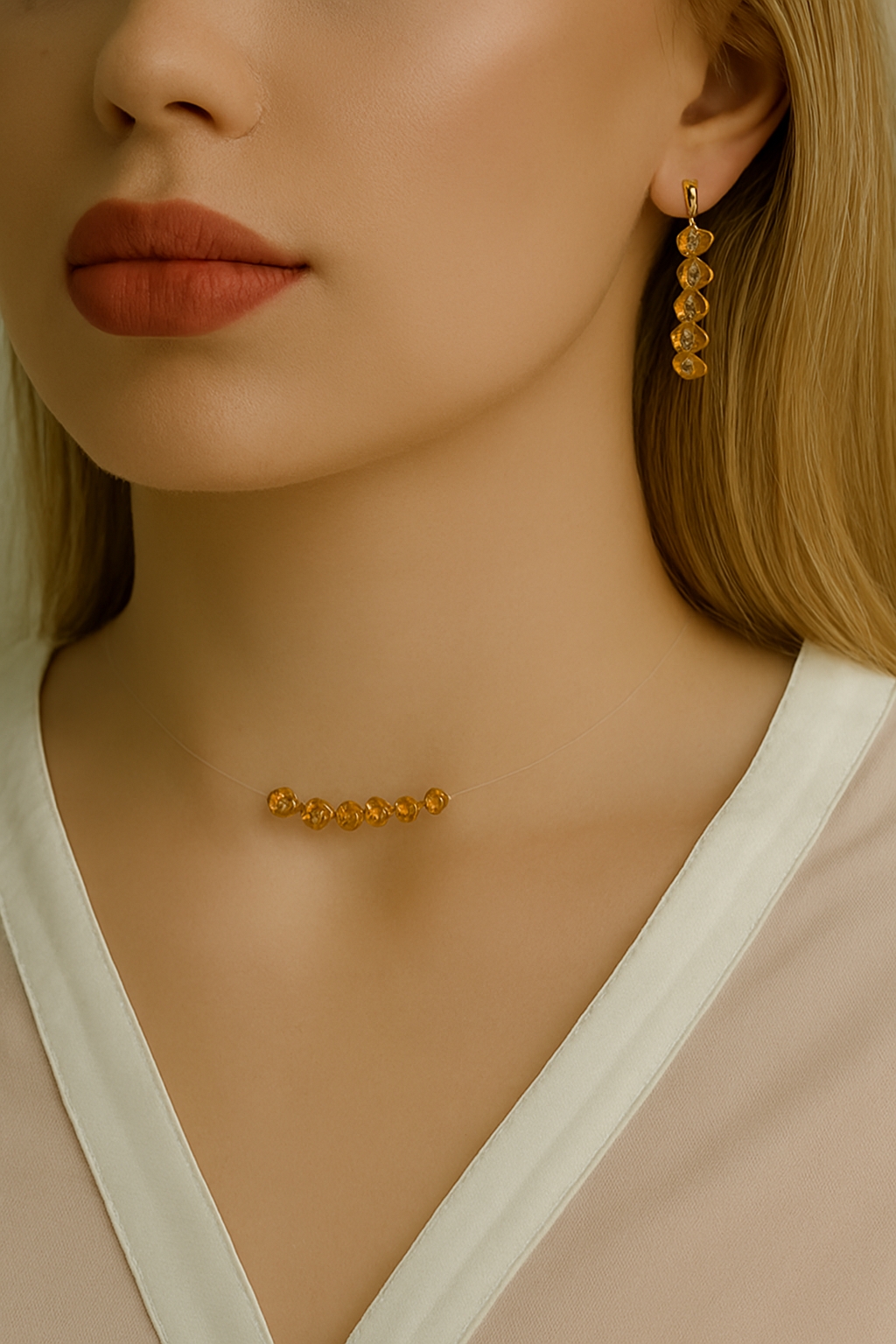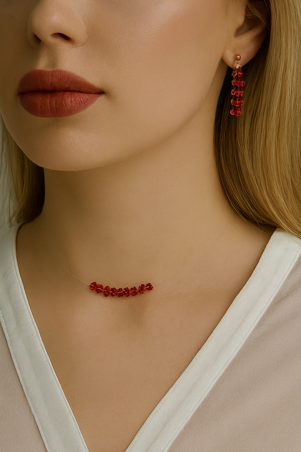 نیم ست کریستال رنگ ثابت با نخ نامرئی