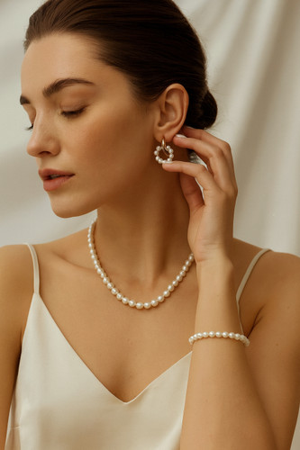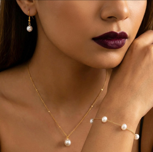 سرویس مروارید پرورشی زنانه با استیل رنگ ثابت – ضد حساسیت