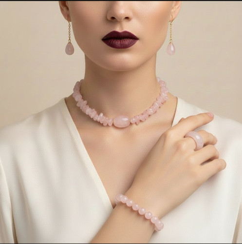 سرویس زنانه مدل KYSERHER02 با سنگ رز کوارتز - زیبایی و عشق در دستان شما